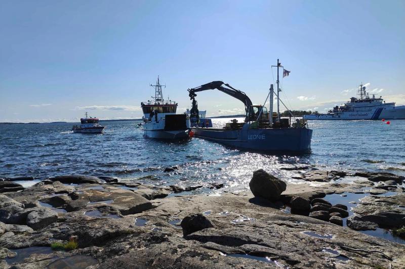 Flera andra fartyg, både från Sjöräddningen och Sjöbevakningen var på plats. Rasmus Karlsson ser bland annat dykare vid skrovet, hur man pumpar vatten i strida strömmar, och de fartyg som är redo för oljebekämpning om det skulle bli nödvändigt.