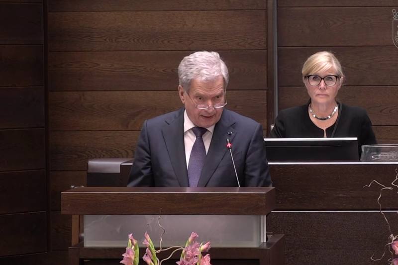 Finlands president Sauli Niinistö var på plats under lagtingets öppnande under fredagen och höll ett tal inför fullsatta läktare.