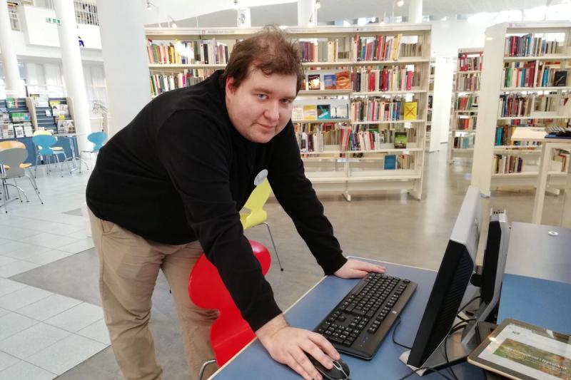 På Mariehamns stadsbibliotek har man under onsdagen bland annat lanserat den digitala Nationalencyklopedin, och under kvällen hålls en snabbkurs i programmering för barn berättar bibliotekarie Jonathan Luoto som just visar upp databasen Nationalencyklopedin.