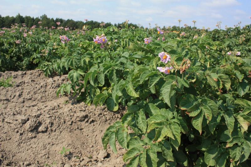 Potatisfält i blom. Arkivfoto.