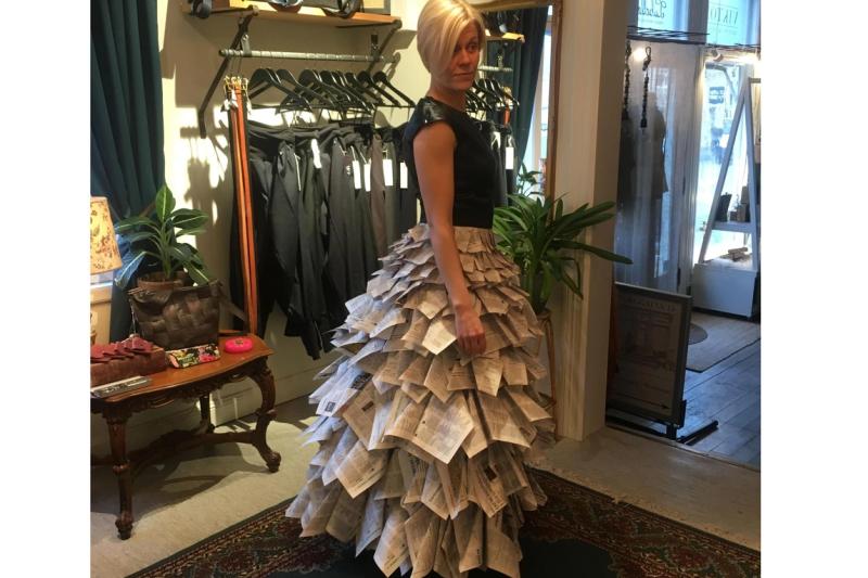 Tidningen Nya Ålands chefredaktör Anna Björkroos kommer att hälsa på presidentparet endast iklädd tidningspapper. Åland idag fick en pratstund med klänningens designer Linda Karlsson.