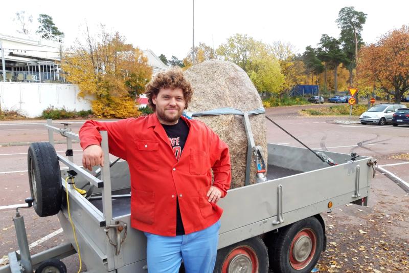 Han liknar stenarna vid föräldralösa barn som han tror har fått hemlängtan. På plats vid västra hamnen har vi vår flygande reporter Peter Grönholm som följde stenens sista resa.