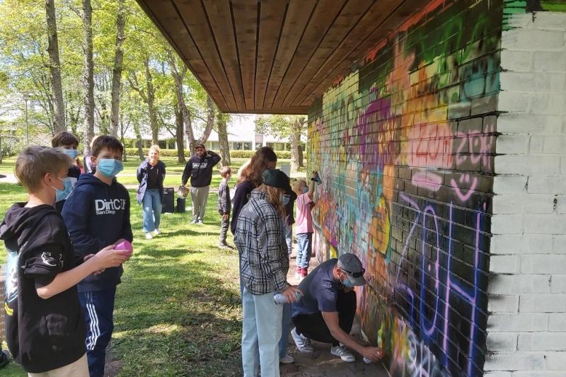 En av de fyra väggarna var under dagen öppen för allmänheten att prova på att måla på. Intresset visade sig vara så stort att det snart tog slut på sprayburkar. Två ålänningar som hann med att prova graffitimålning och som dessutom hade med sig egna burkar var Filip Örblom och Valter Isaksson.