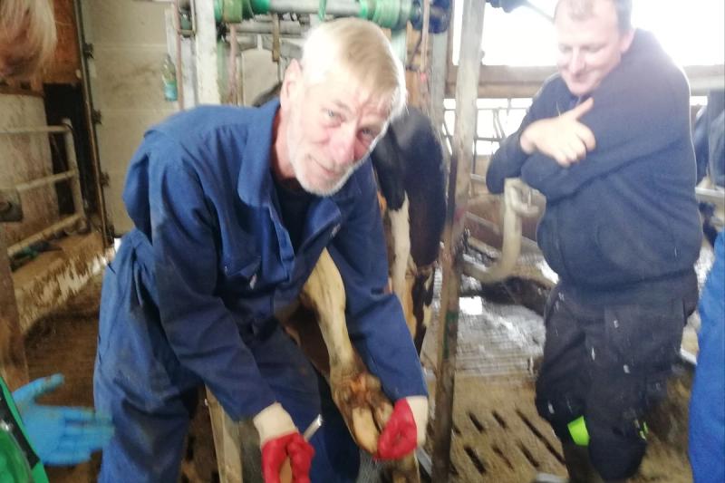 Vi träffade klövverkare Piet Kloosterman som hade satts i arbete vid Östergårds mjölk i Kasteholm, Sund.