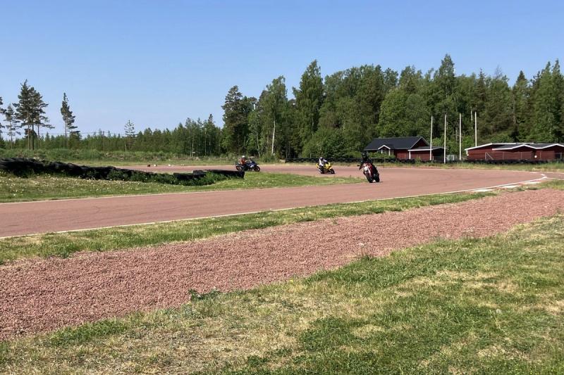 Motorcyklister och mopedister tog i helgen chansen att knixa sig fram på gokartbanan i Vessingsboda, Lemland.