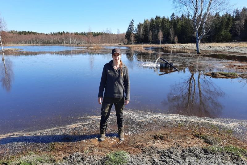 Vi besökte den nya våtmarken i Bomarsund där vi träffade projektledare och planerare Linda Sundström.