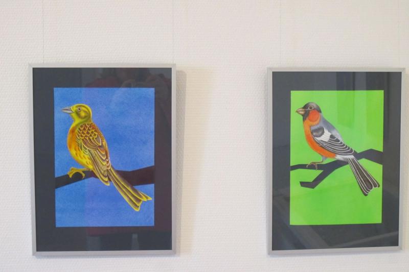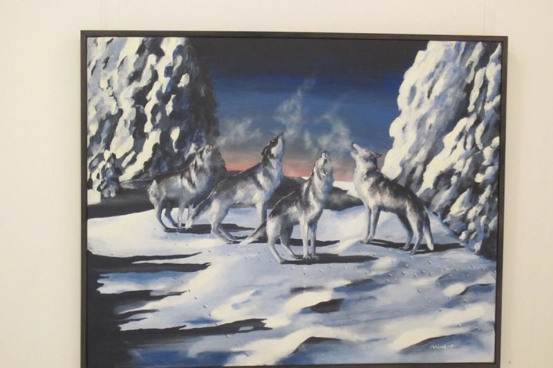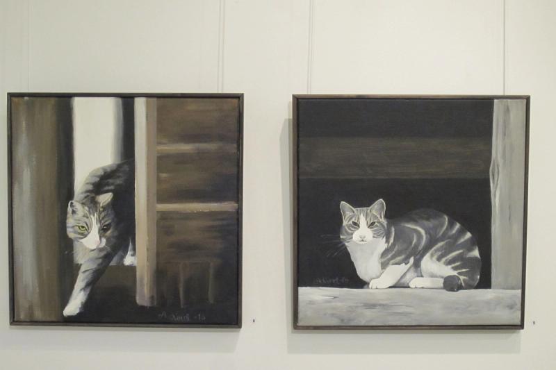 Djur är mitt liv säger Anki Lind och väntar otåligt på besked om en väntad fölning samtidigt som hon guidar runt i sin utställning. Katter, hundar, hästar och får är alla kära motoiv, men också vilda djur som en flock vargar en månskensnatt i smällkalla vintern har kommit med i utställningen. En del av målningarna har ett grafiskt, avskalat utförande i nästan uteslutande vitt och svart. Det är förvånansvärt mycket du kan skala bort utan att det stör ögats och hjärnans förmåga att uppfatta vad bilden föreställer konstaterar Anki Lind. I ett annat rum på museet visas fåglar målade av Pirjetta Brander, en konstnär från Helsingfors som hösten 2915 var gäststipendiat på Eckerö post- och tullhus och då intresserade sig för museets fågelsamling.