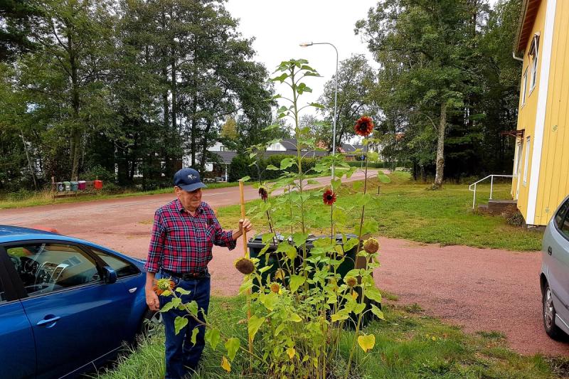 Första bidraget står Lars-Erik Lindqvist för. Mäktiga 2,25 meter mäter denna. Vill du skicka in ett bidrag? Då kan du maila namn, adress, telefonnummer, bild på solrosen och/eller ungefärliga mått till [email protected] eller skicka sms till 04570017855. Lycka till!