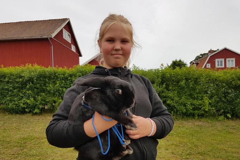 Bild 1 av 2En av lägerdeltagarna, Denise, ses här med kaninen Alfons. Foto: Dinah Ahl