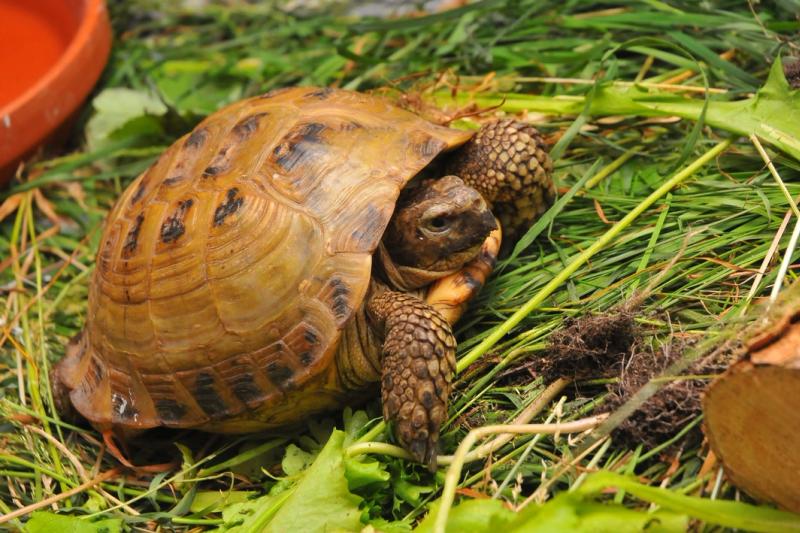 Kobbe försvann i augusti förra året (2020) efter att vi gett honom en ny utebur som vi trodde var rymningssäker, berättar Ulrika Lindfors-Davies, men han grävde sig ut. I våras läste hon om en likadan rysk stäppsköldpadda på Öland som hade rymt och kommit tillbaka när det blev vår. Då tändes ju hoppet lite hemma hos Kobbes skötare, men sen gick dagarna, veckorna och månaderna, men ingen Kobbe dök upp. Måndagen den 5 juli 2021 tyckte grannarna Siv och Rainer Kull att de såg en sköldpaddda i trädgråden när de körde upp på gården med bilen, eller var det bara ett stort löv? Och mycket riktigt, visst var det en sköldpadda. Och det var grannens Kobbe! Han fick komma in i köket och mumsa i sig vatten och sallad, medan Siv och Rainer Kull letade rätt på ägaren.