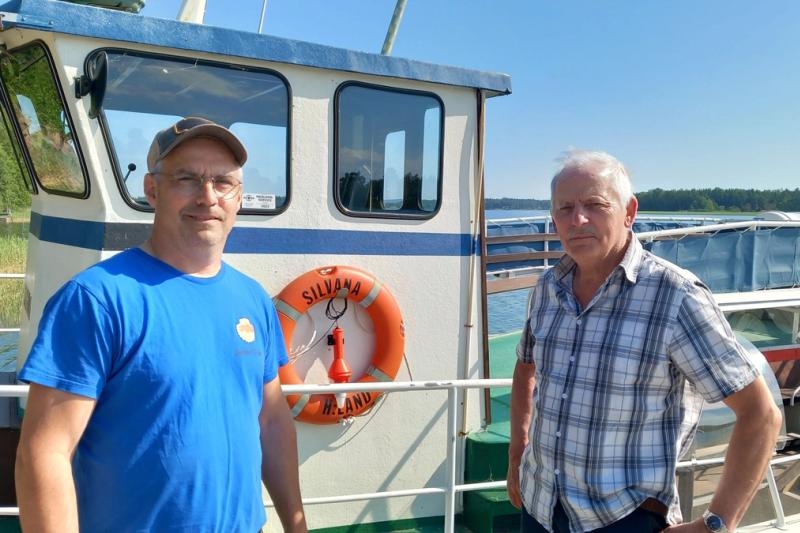 I många år nu har det gått cykelfärja från Skarpnåtö i Hammarland över till Geta, men förra året höll på att bli det sista. Nu är det klart att M/S Silvana trafikerar även denna säsong. Vi träffade två av kaptenerna på kajen i Skarpnåtö, Conny Sahlin och Jalle Häger.