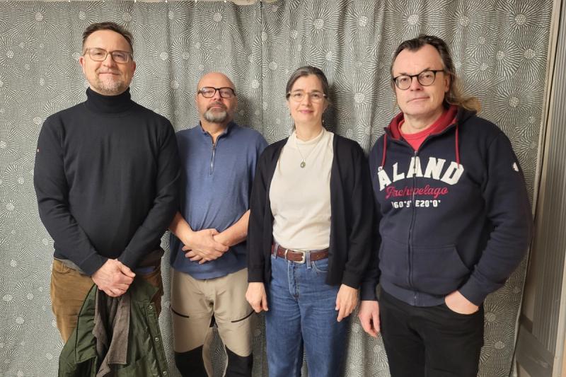 Häggblom och Slotte besökte Ålands Radios studio tillsammans med sina kollegor Arn-Henrik Blomqvist och Johanna af Schultén.