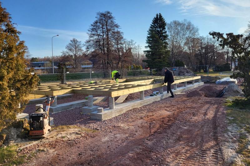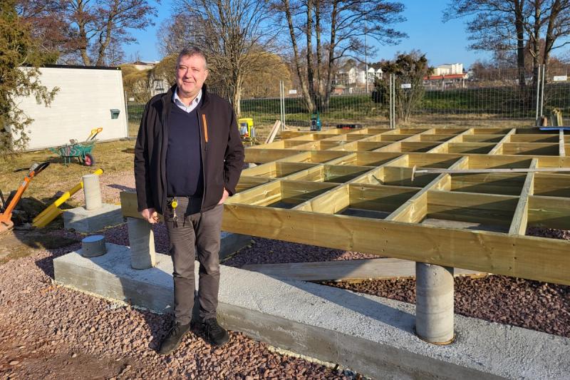 – Arbetet framskrider i bra takt, nästa vecka lägger vi upp väggarna, säger Leif Andersson, projektsamordnare på staden.