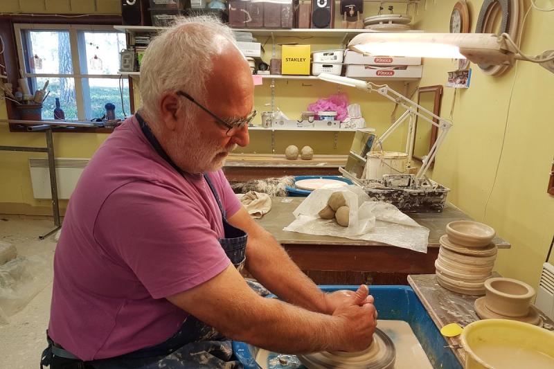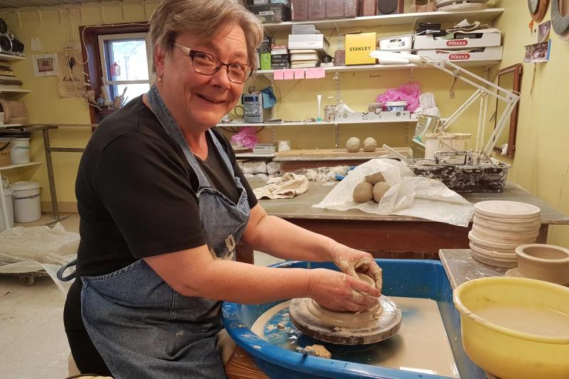 Ann-Christine Karlsson fick testa sina färdigheter i hans studio i Hammarland.