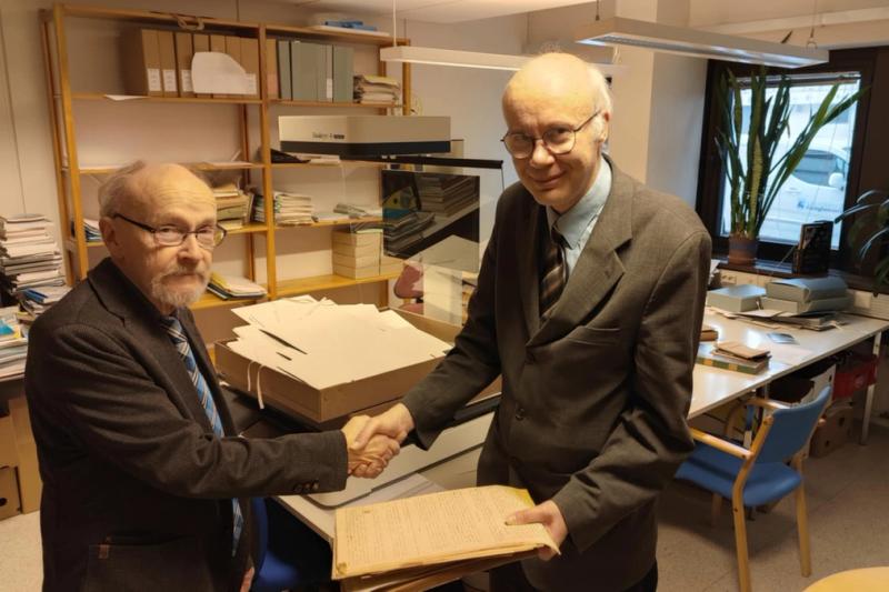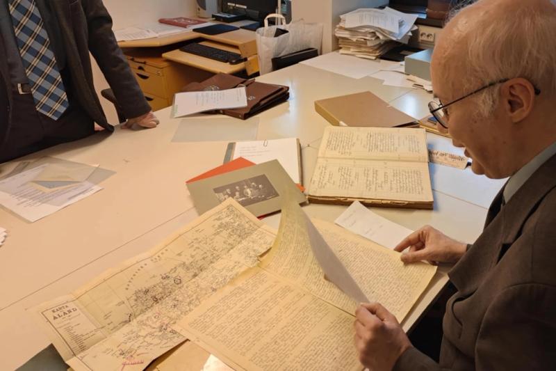 Ernst von Wendt var en tidningsman, politiker, författare och översättare, som levde mellan 1877 och 1939. 1918 utsågs han till kanslichef hos militärguvernören och landshövdingen Hjalmar von Bondsdorff här på Åland. Även om han bara verkade på Åland en kort tid, så var det ändå en viktig period för Åland, då han under samma år också deltog som sakkunnig i den internationella Ålandskommissionen, som såg till att militära fästningar på Åland demolerades. Under tisdagen lämnade barnbarnet Rikhard von Wendt över en mängd material, såsom telegram, anteckningar och kartor, till Ålands landskapsarkiv.
