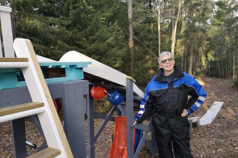 En riktig åktur fick sej Anki Karlsson då hon testade Stefan Öhbergs senaste bygge till barnbarnen - En pulkarutschibanakana!