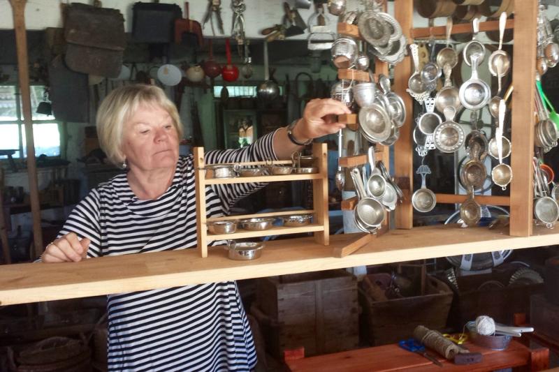 I det här reportaget hälsar vi på hemma hos Gerd Lindblom i Saltvik Borgboda. Gerd har samlat på gamla saker i snart trettioårs tid, med en pappa som auktionsutropare kom Gerd tidigt i kontakt med antikviteter..... Men kanske det hela ändå började då Gerd som riktigt liten flicka fick krypa runt på mormor o morfars vind. Vi träffar Gerd en solig och varm förmiddag i ladugården som numera är både festlokal o gårdsmuseum, solen strålar in genom det djupa fönstervalven och kastar nytt ljus över de gamla anrika bruksföremålen som snyggt o prydligt monterats längs tak o väggar. Programledare Kjell Brändström.
