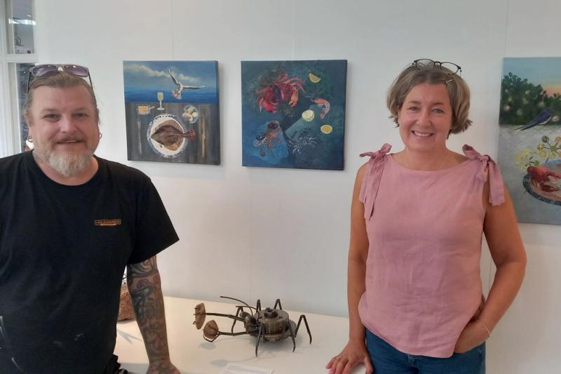 Konstnärerna Lin Simons och Johan Karlsson har samarbetat och nu öppnar deras gemensamma utställning med både metallskulpturer och målningar i mixed media teknik.