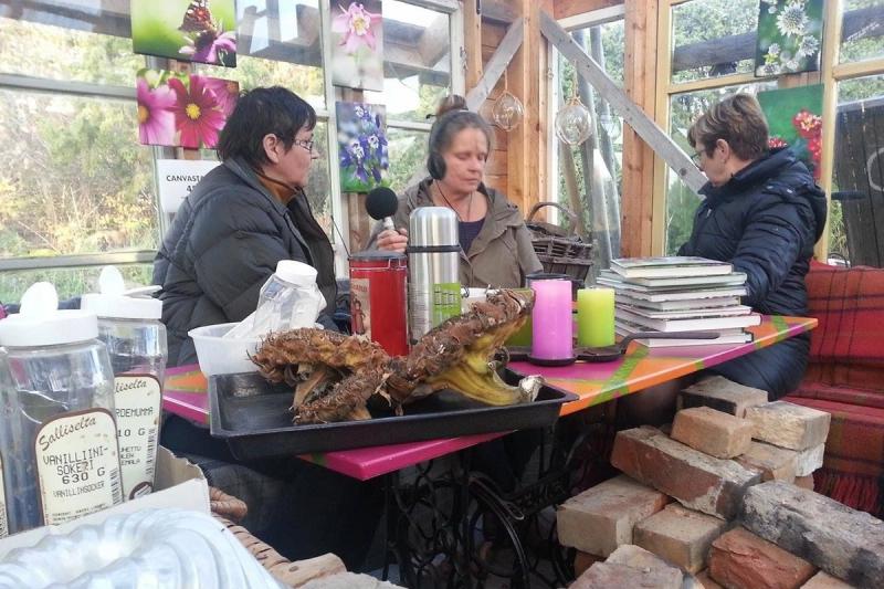 I programmet träffade vi idag Lotta Gustafsson och Siv Kyrkslätt-Henriksson för att prata trädgårdsdrömmar. För det är vad trädgårdsentusiaster ägnar sig åt under årets mörkaste och kallaste månader - Drömmar och mer eller mindre vidlyftiga planer. Tack vare den varma hösten går det dock fortfarande bra att gräva och stuva om i rabatterna, så vi tog en promenad i Lottas höstvilande trädgård innan vi slog oss ned med varsin kopp kaffe och en stor trave inspirationslitteratur inne i det stora växthuset på Järsö.