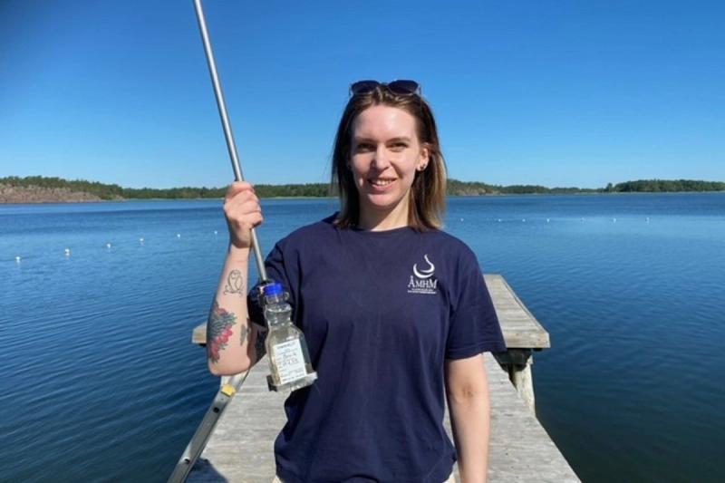 – Vi gör det här för att det ska vara tryggt och säkert för badgästerna att bada, säger Hanna Rintamäki, vikarierande miljöskyddsinspektör och badvattenprovtagare.