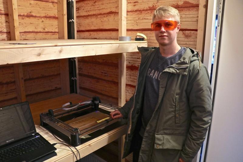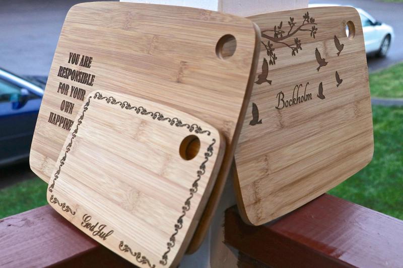 Det doftar upphettat trä och låter som en tatueringsmaskin inifrån förrådshuset vid det nya bostadsområdet på Djurgårdsvägen i Mörby, Hammarland. Här har nyföretagaren Linus Aarnio sin verkstad och utvecklar för fullt den nya nischen - att lasergravera praktiska produkter som skärbrädor, ostbrickor och plånböcker.