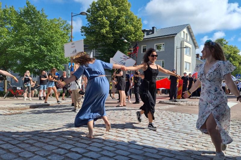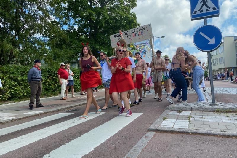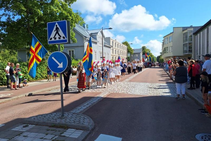 Karnevalsstämning när Tall Ships Races-paraden tågade genom Mariehamn