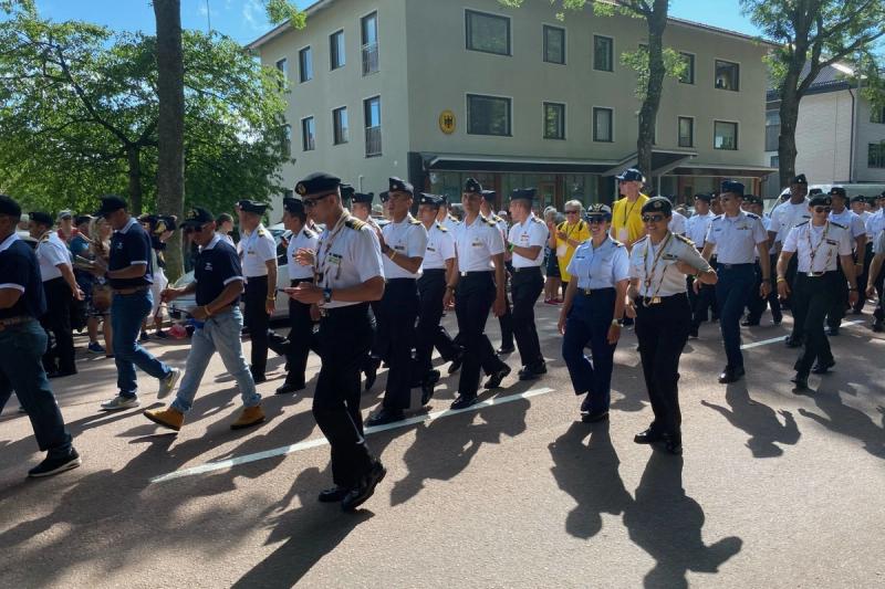 Klockan 15.30 på torsdagen arrangerades crew parade för Tall Ships Races-deltagarna och då var det glad stämning i Mariehamn.