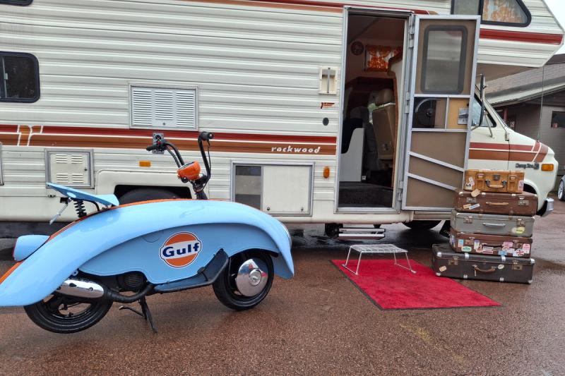 En husbil som eleverna har renoverat elen i visades också upp och så ordnades det tävling i lastbilsdragning.