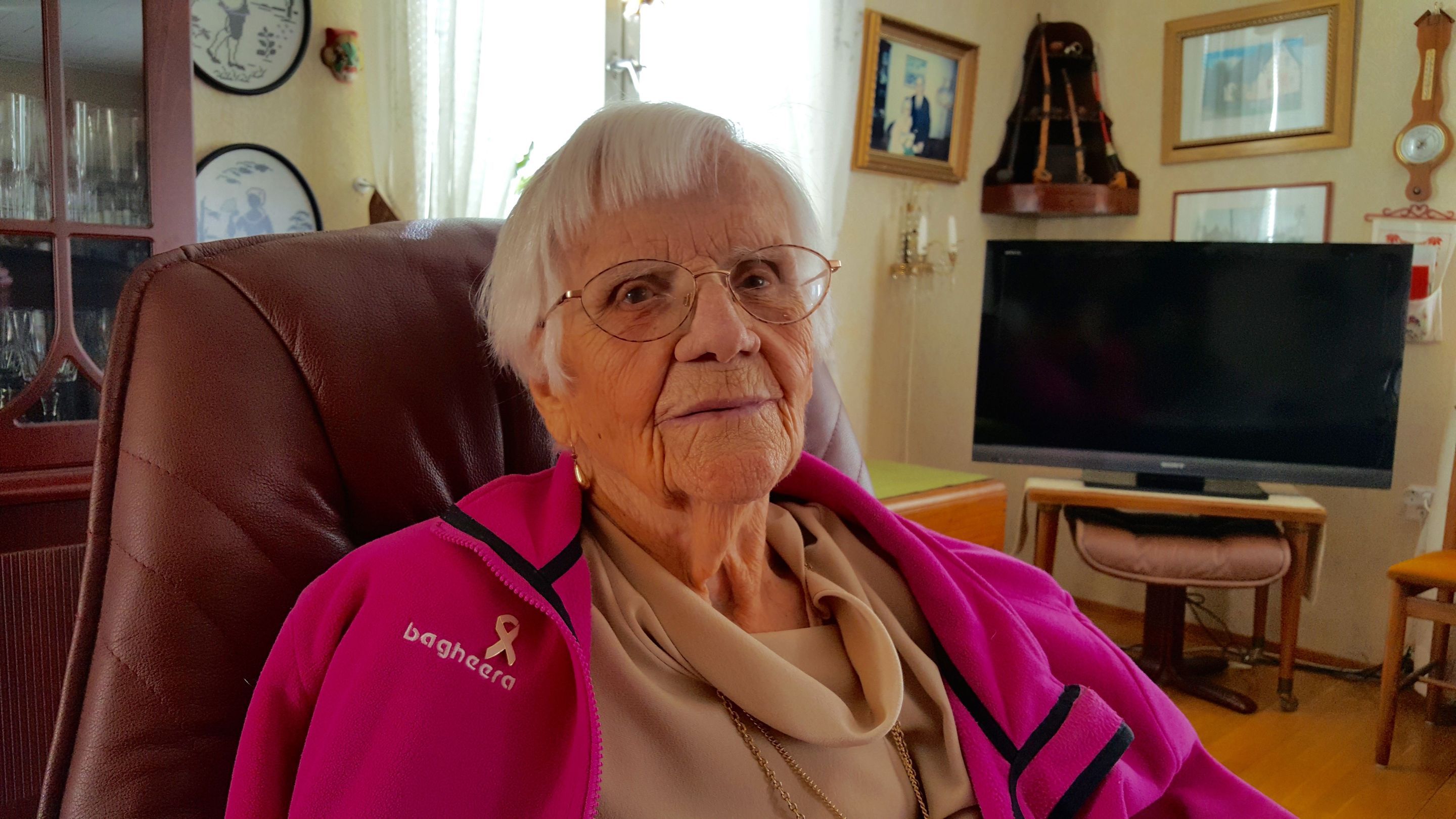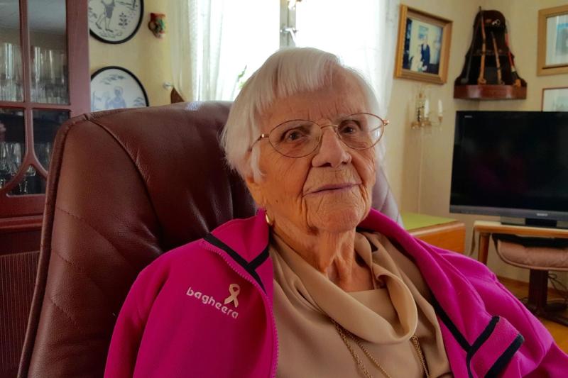 I ett rappat hus på Öhbergsvägen bor Saga Johansson. Saga fyller 99 år i dagarna och är därmed nästan jämngammal med Finland som firar 100 år som självständig nation. Ordet självständig passar även mycket bra in på Saga. Maken Bengt som tillbringade hela sitt yrkesverksamma liv till sjöss var borta långa tider och Saga fick, som så oerhört många andra åländska kvinnor, sköta allt på hemmaplan. Bland annat övervakade hon familjens husbygge och fattade alla beslut som krävdes. Hon uppfostrade familjens barn och hon hyrde ut rum till turister och skolelever. Idag är det mera tyst i huset på Öhbergsvägen. Saga, som är änka sedan en handfull år, bor ensam i huset och här kan hon bo tack vare hjälp från hemtjänsten och av sin dotter.