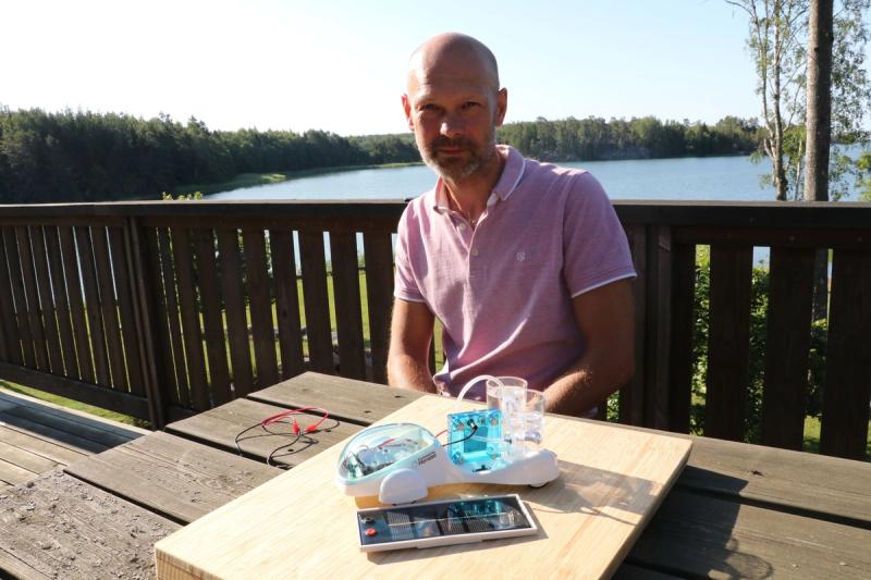 Det handlar inte om en personbil, men en bil ungefär i storleken av en radiostyrd bil. Ägaren till den här bilen heter Jan-Erik Eriksson och vi besökte honom hemma i Eckerö för att se hur vätgasbilen fungerar och hur den blev till.
