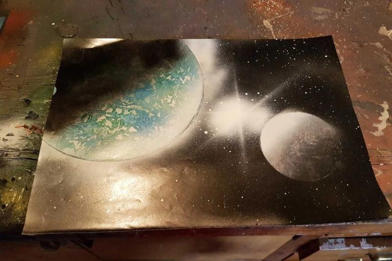 Alexander Sjöberg 17 år tillbringar största delen av sin lediga tid hemma i garaget i Strandnäs där han sprejmålar fram bilder av planeter och fjärran galaxer. Gomorron hälsade på hos rymdmålaren.