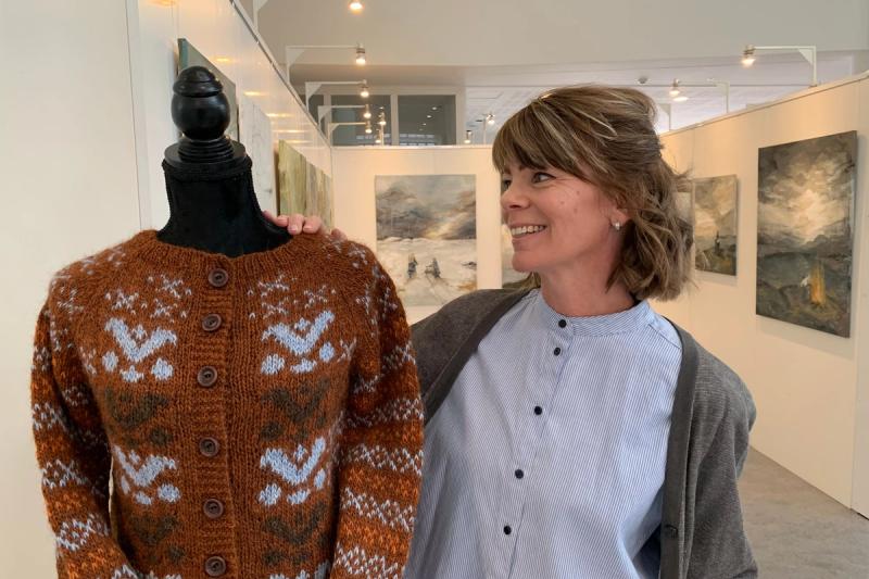 Anna Lind Bengtsson målar Stormskärs Maja i akryl och stickar Maja-kofta efter eget mönster