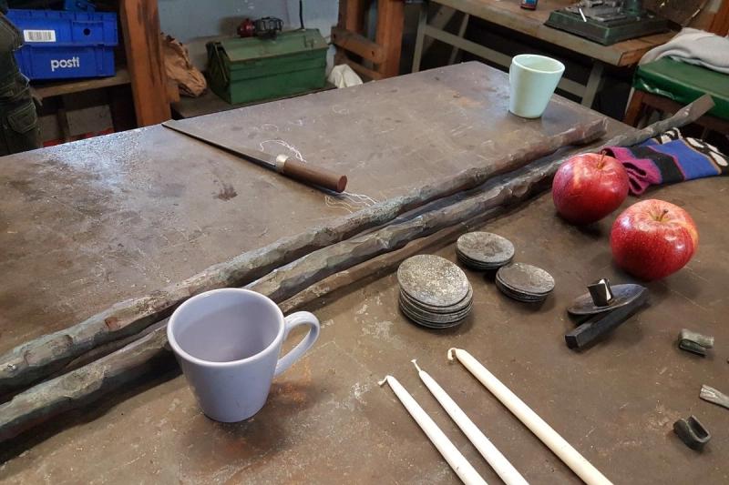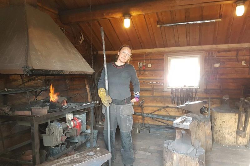 I smedjan i Sjökvarteret så håller Anna Sundblom-Westerlund på att smida ljusbärare