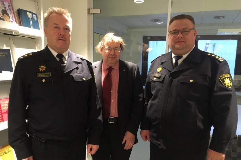 Från räddningsinstitutet i Kuopio gästföreläser Äldre lärare Petri Huupponen och Överlärare Mika Gröndahl. De säger att Åland skiljer sig från andra platser i Finland genom att vi i vårt lilla samhälle blivit bra på att samarbeta.