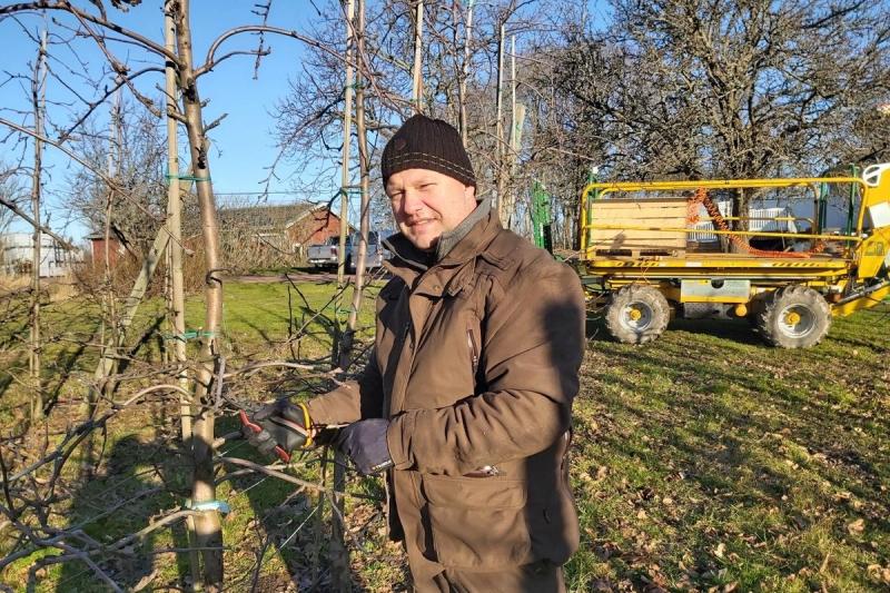 På Karls Ers i Tjudö går äppelbeskärningen för högtryck just nu.