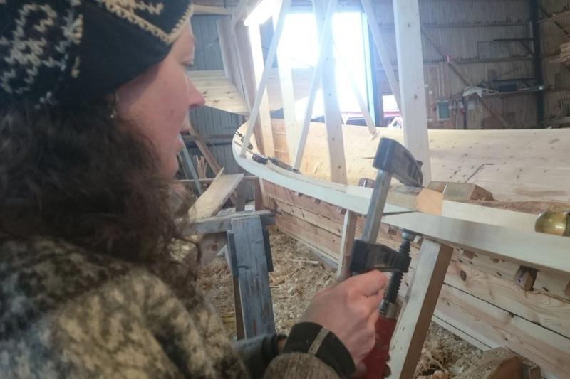 I sjökvarteret pågår byggandet av segeljakten Alanta och de har kommit halvvägs i skrovbygget. Den här veckan gästas de av båtbyggare från Norge.