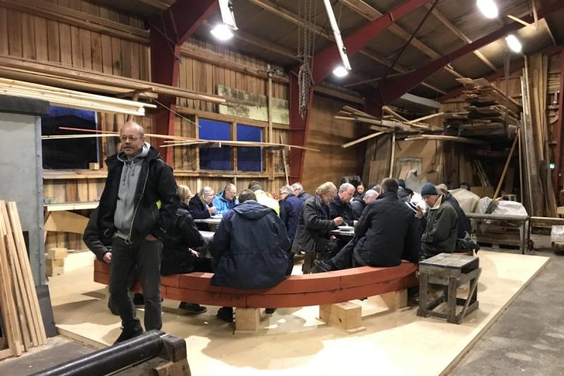 I torsdags kväll firade Stiftelsen Emelia att man återupptar byggandet av segelskutan Emelia i Sjökvarteret efter sommaruppehållet med att, bland annat, skruva upp plaketter med namn på donatorer till bygget och med att bjuda på fisksoppa.