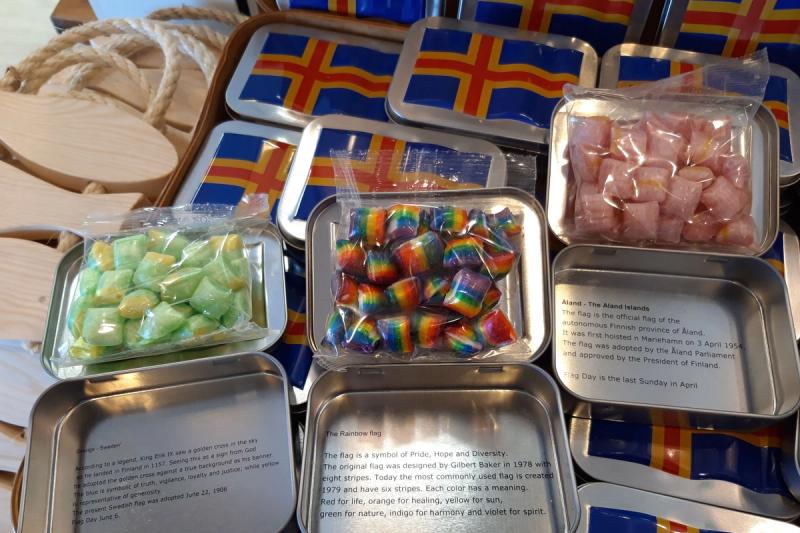 Vi gick till botten med det hela, och hamnade i en liten handelsbod i Birkaterminalen där Cecilia Dahlblom har fullt upp med att ta fram nya karameller med typiskt åländska smaker.