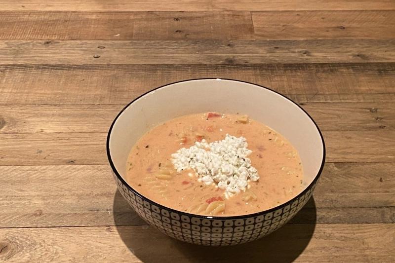 Varje onsdag kommer en anställd på Ålands Radio att presentera ett recept. Den här veckan var det redaktionschefen Camilla Karlsson-Henderson som stod i tur, och hon presenterade en tomat- och pastasoppa.