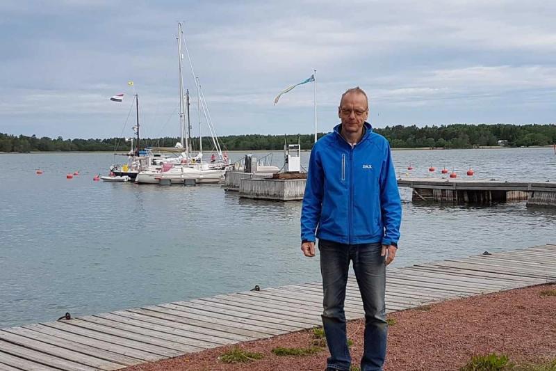 Ann-Christine Karlsson träffar Mikael Sundblom på plats i gästhamnen i Degerby.