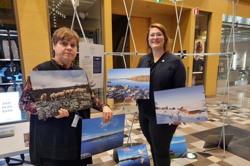 12 foton har valts ut efter att allmänheten fått skicka in foton tagna i den åländska skärgården och nu kommer de att pryda en kalender men också visas i en utställning. Den håller just nu på att hängas upp i ett varuhus i Jomala,. Gomorron skickade Anki Karlsson dit tillsammans med verksamhetsledaren från Företagsam Skärgård Agneta Wackström och projektledaren Tiina Björklund från Åland 100.