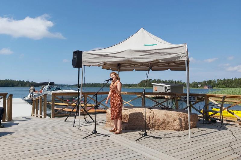 Festivalen fick sin start på lördagen på Lolo's Seaside Café i Geta och vi befann oss på plats för att kolla läget. Poeten och poetry slam-estradören Ingrid Stenlund var en av de två som uppträdde på caféet.
