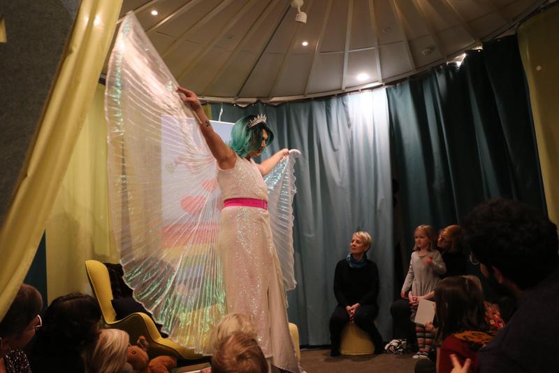 Bild 3 av 4Fyra olika sagor lästes, bland annat om en färgtrumpet och en enhörning med magiskt bajs. Foto: Rebecca Björkholm.