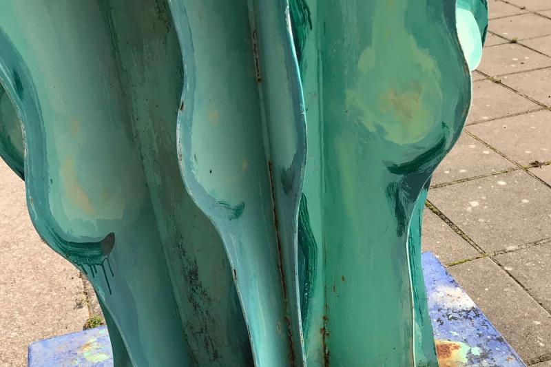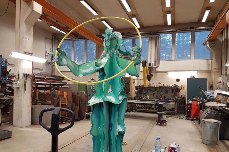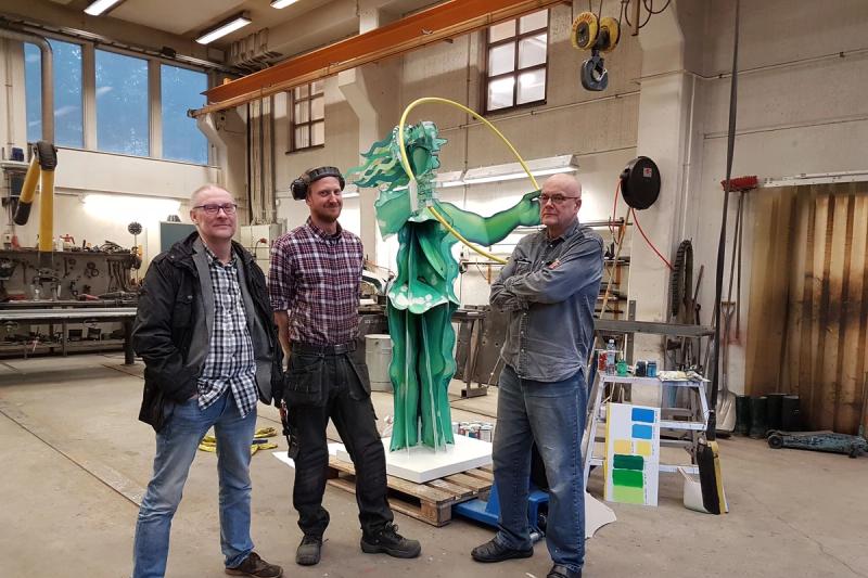 Just nu renoveras statyn Gröna Damen, ett konstverk av Olle Kangas som vanligtvis brukar stå utanför Mariebad.