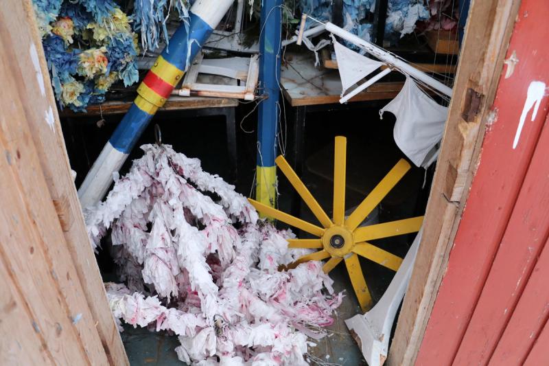 Bild 3 av 3Ihopplockade delar av midsommarstången som förstördes vid Hammarbo under stormen. Foto: Peter Grönholm