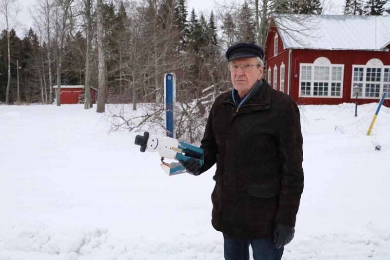 Bild 1 av 3Stångkapten Stig Mattsson ber om hjälp med årets midsommarstång. I bakgrunden ses stången som Alfrida bröt itu. Foto: Peter Grönholm
