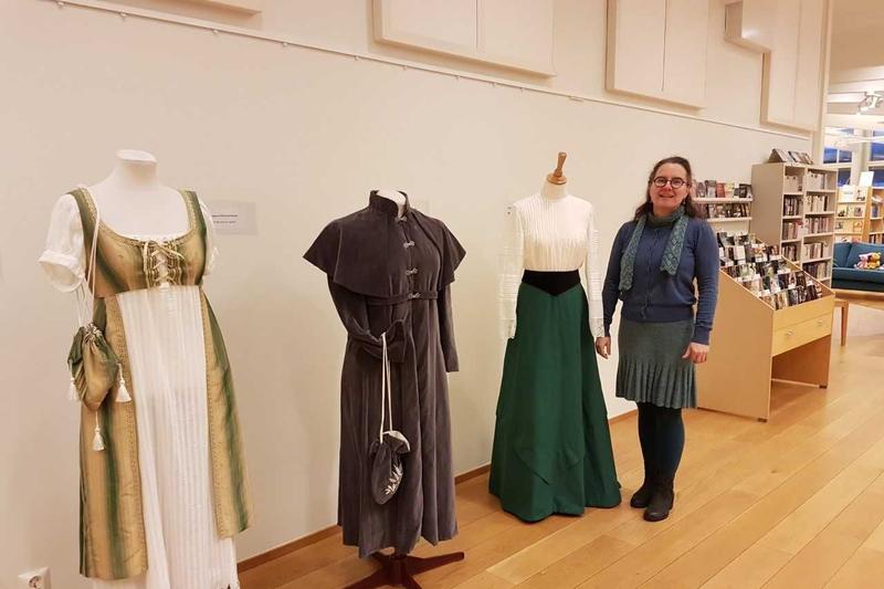 På Finströms bibliotek pågår utställningen En bit dräkt historia januari ut. Anki Karlsson träffade utställaren Judit Deáki på biblioteket.