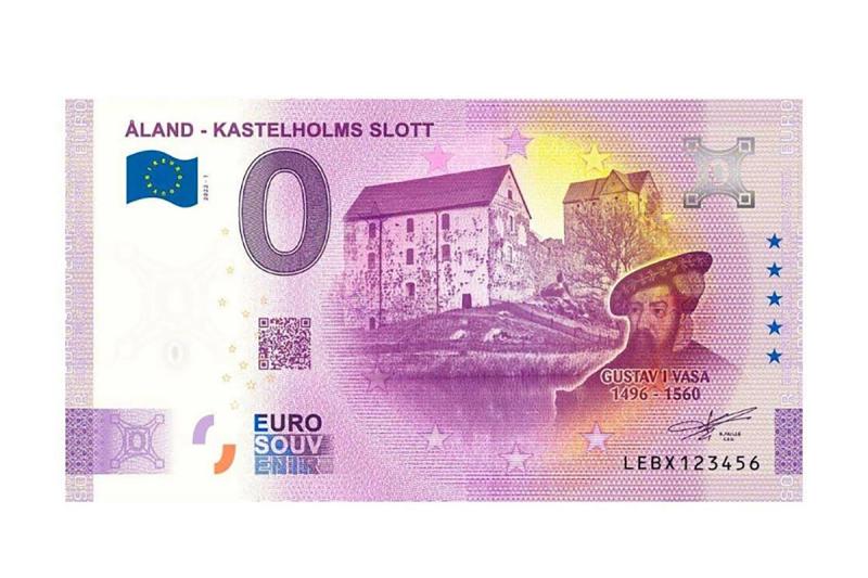 År 2022 trycktes 3000 stycken noll-euros-sedlar av företaget Suomen Rahaliike Oy med Kastelholms slott som motiv.
