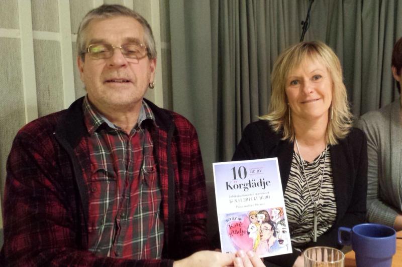 Medisläraren Åsa Isaksson har 30 års erfarenhet av att leda kör och arrangera körverk. Nu har hennes sångare i Körglädje 10 års-jubileum. De ska firas på stadshusets scen på lördag. Till studion kom sångarna Birgitta Landström, Dan Eriksson och Åsa Isaksson.
