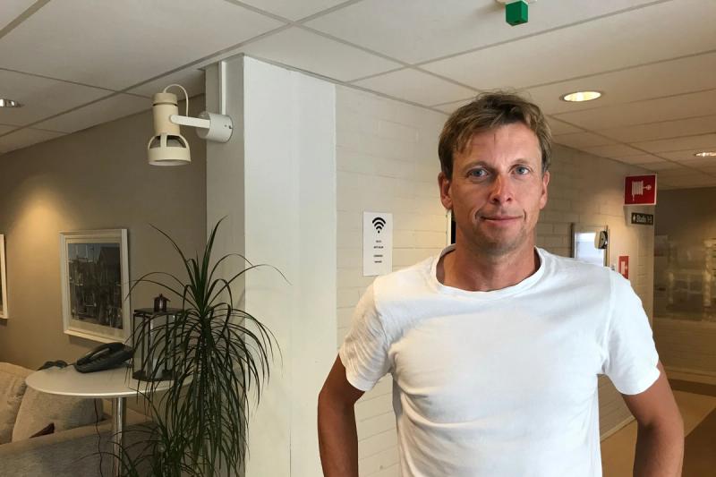 Vd för Kraftnät Åland Christian Augustsson berättar om den nya lokalen för Gomorrons Kjell Brändström.